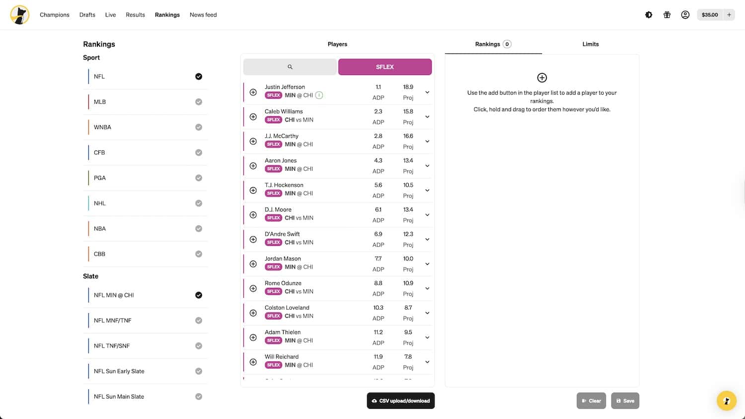 For example, you can draft a team based on all games in an NFL slate or just choose to draft for the Monday Night Football game.