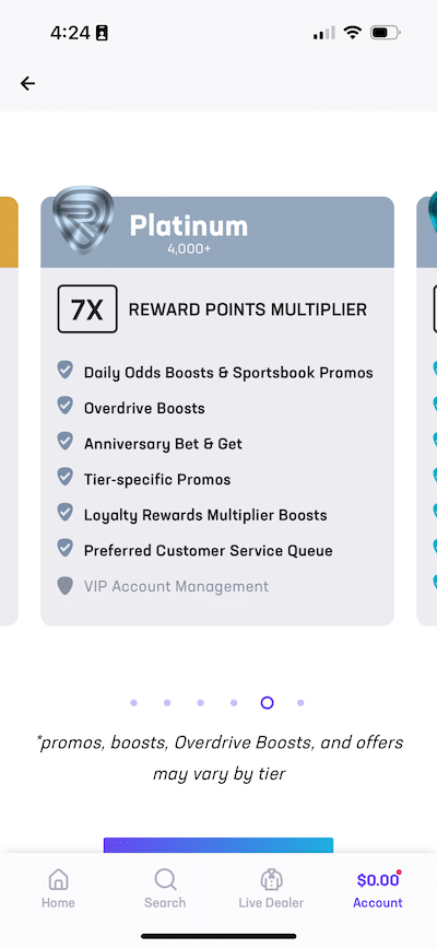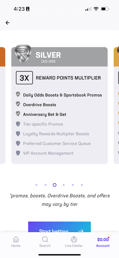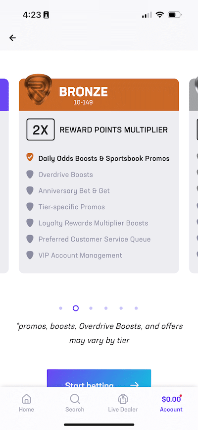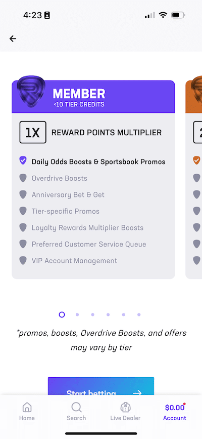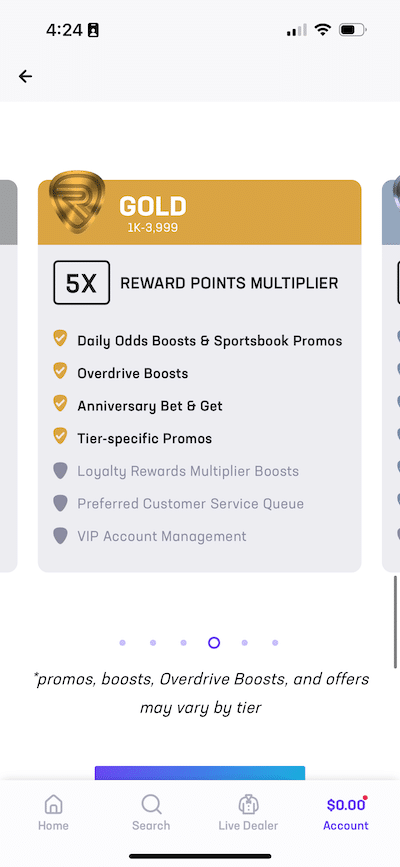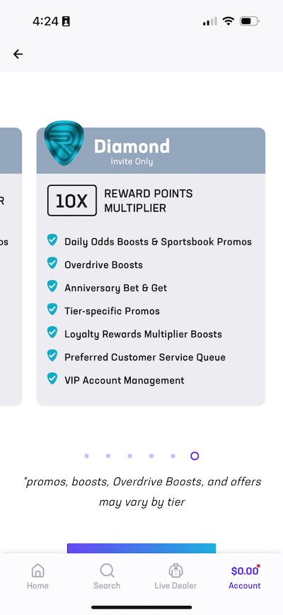 The program has six tiers, with benefits escalating as you move up. Members enjoy daily odds boosts, overdrive boosts, tier-specific promotions, and access to VIP managers.