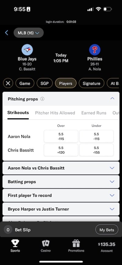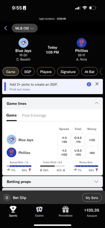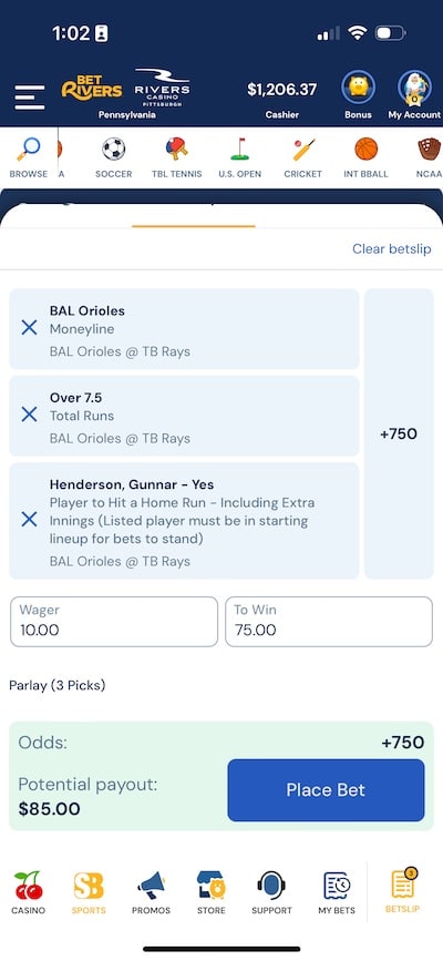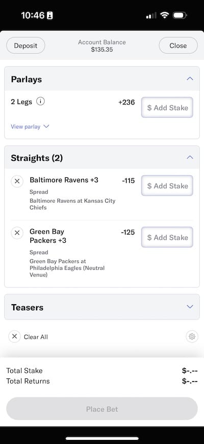 One feature I like at BetMGM is Edit My Bet. This lets you tweak your active bets—change up your picks, swap them out, or drop one entirely. For example, if you’ve bet on the Ravens, Orioles, and Colts but have second thoughts about the Colts, you can easily remove that bet and let the others ride.