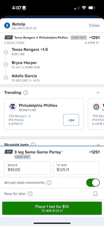 Innovation is another strong suit for FanDuel. Their latest feature, Pulse, puts a fresh spin on micro-betting, letting you place live bets based on how the game flows. Plus, they’re pioneers of Same Game Parlays and have taken it up a notch with the “+” version, allowing you to mix SGPs across different games—like betting on two players to hit the over on passing yards in a Ravens game and pairing it with two bets from an Orioles game.