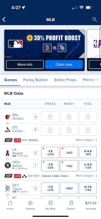 Fanatics also offers live streaming on select games. Bet $1 or more, and you can stream the game through the app, including matchups featuring the Ravens, Colts, and Orioles.