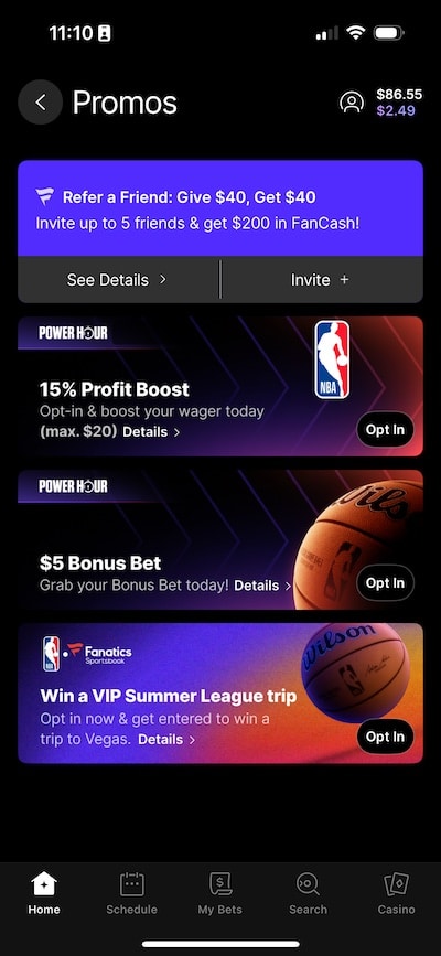 Fanatics is worth checking out for their cashback program if you’re the kind of bettor who likes to bet big. With every bet, you earn FanCash that can be used for gear or converted into bonus bets. You get 1% back on straight bets, 3% on parlays, and 5% on same-game parlays, which adds up quickly if you’re a frequent bettor.