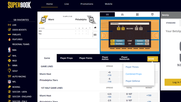 - Weak game prop variety: SuperBook is essentially a blank slate in terms of game props, offering only a handful of pre-made combos. There are no options for first basket scorers or team totals.