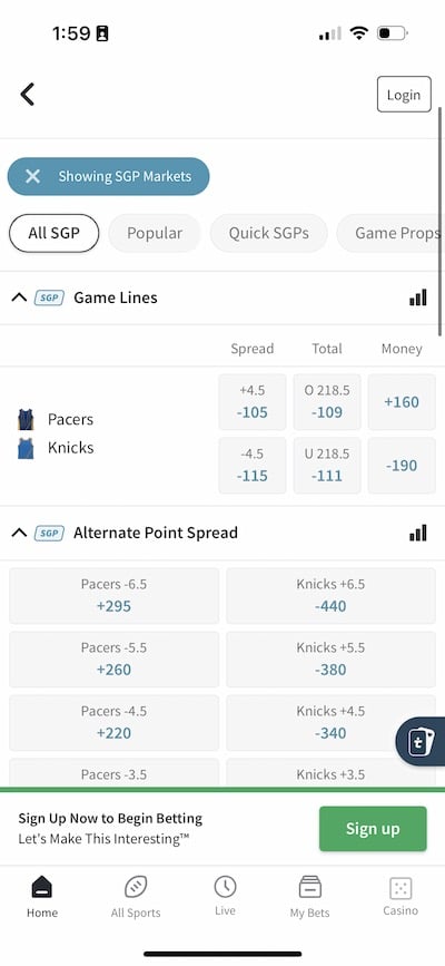 - Their same game parlay builder is efficient; it shows you the odds right in the betting menu when you open the SGP tab. This is way easier than other books where you have to add picks to your slip just to see the odds.