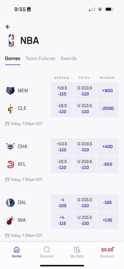 Still, Sporttrade is a must-use app in Virginia for the odds competitiveness alone. There aren't as many props available as traditional sportsbooks have, but it should be your go-to for straight bets (as well as the props they do offer).